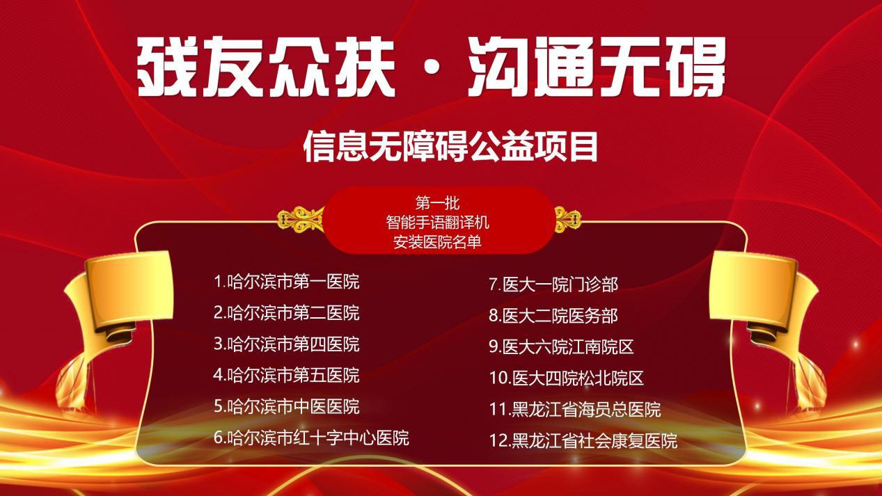 活动获得社会爱心企业黑龙江甘棠科技有限公司的积极参与和支持,捐赠18万元购买12套设备。捐赠给市残联、市卫健委选定的残疾人就医需求相对集中的12家医院。